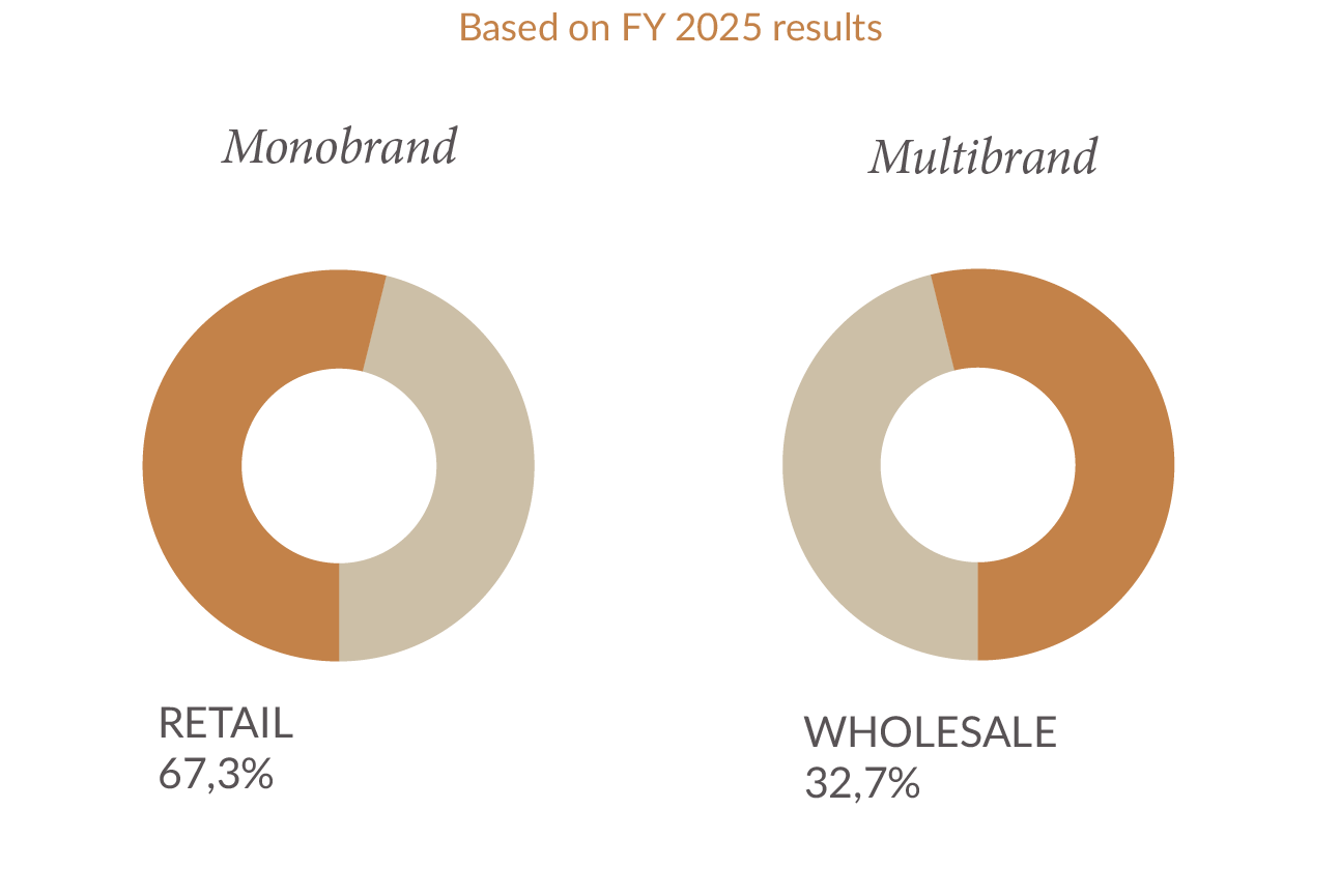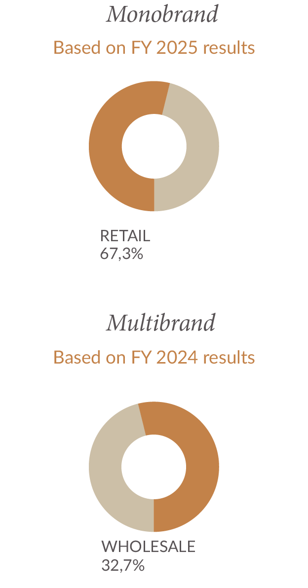 The brand’s presence on the luxury high streets of leading cities and resorts - with prestigious monobrand stores – as well as in the most exclusive and appealing sales spaces in multibrand and luxury department stores is consistent with its positioning at the top end of luxury and its acknowledged prestige.
