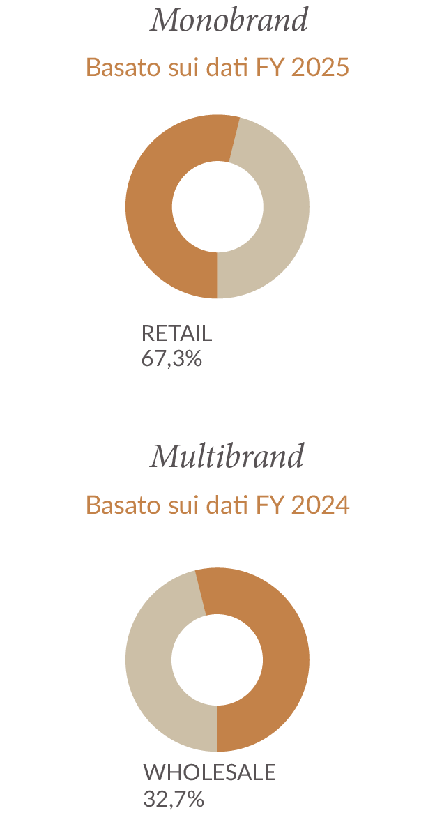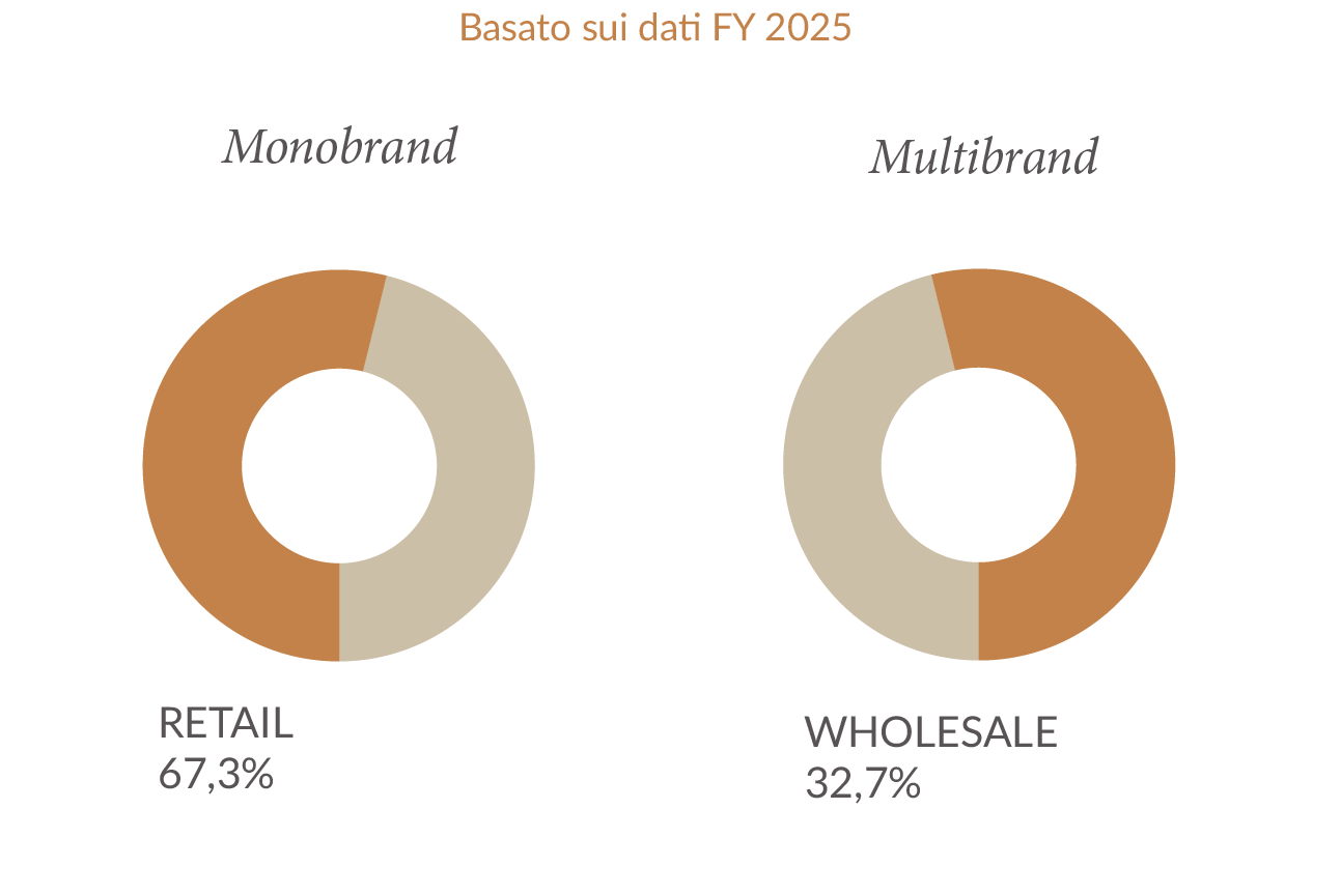 Presenza nelle vie del lusso delle principali città e località resort, con prestigiose boutiques monomarca, e negli spazi più esclusivi e attraenti dei multibrand e Luxury Department Stores, coerentemente con il posizionamento nella fascia più alta del lusso e il prestigio riconosciuto al brand.